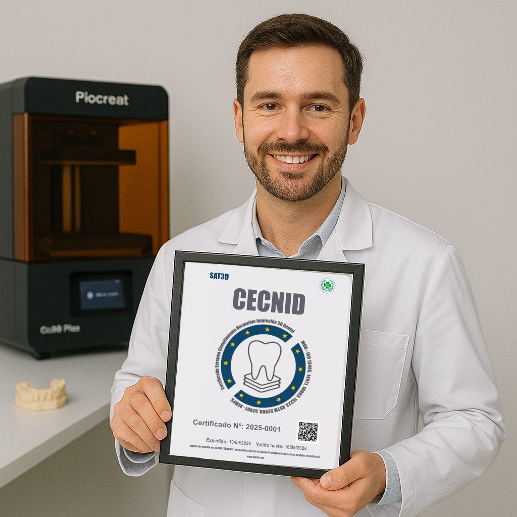 El Certificado Europeo de Cumplimiento Normativo en Impresión 3D Dental (CECNID) está diseñado para proteger a los laboratorios dentales que trabajan con tecnologías de fabricación aditiva. Si tu laboratorio aplica buenas prácticas y se esfuerza por cumplir con la normativa, este certificado puede ayudarte a demostrarlo de forma clara y profesional.